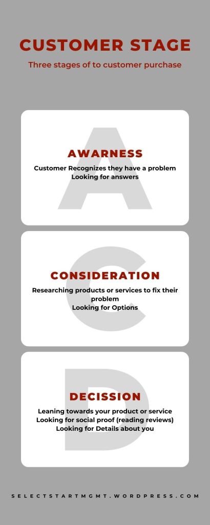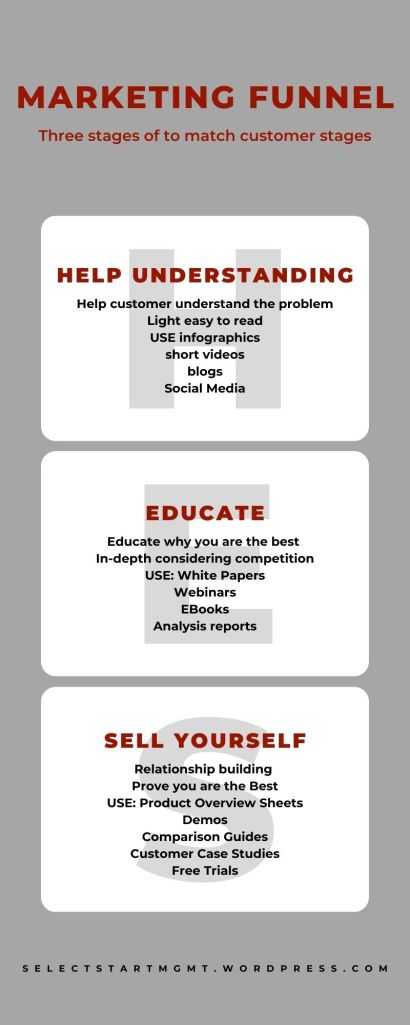 Defining the goals is easier said than done. To start, you can focus on how the content can solve a company goal or how it can fill gaps or provide opportunities (Wilson, 2020). Use the above infographic for generating ideas of the customer stage, marketing funnel stage, or sales funnel stage that would provide your business with the greatest benefit.